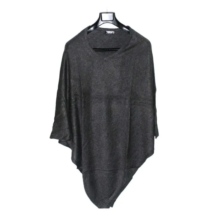 Plain Dark Grey Pashmina Panchoo For Women