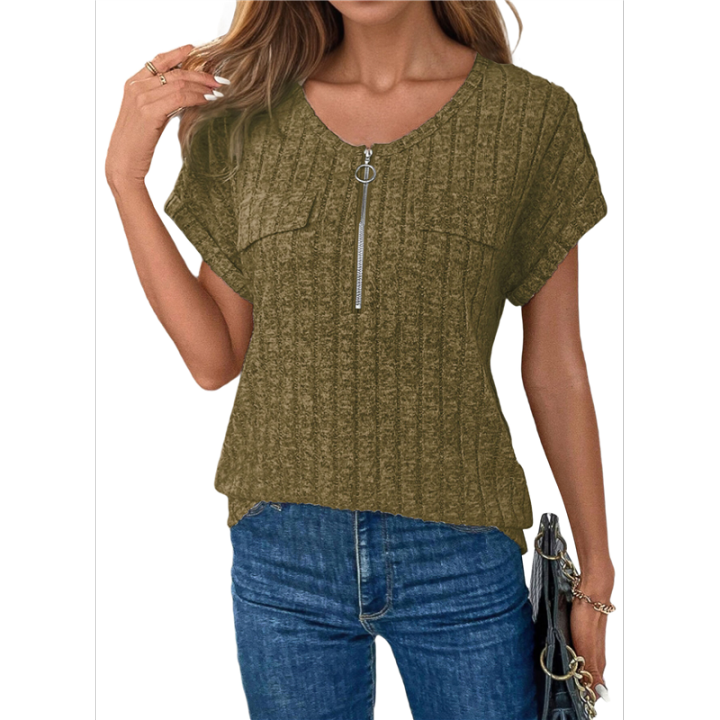 Plus Size Womens Tops 1/4 Zip Up Short Sleeve Tunics
