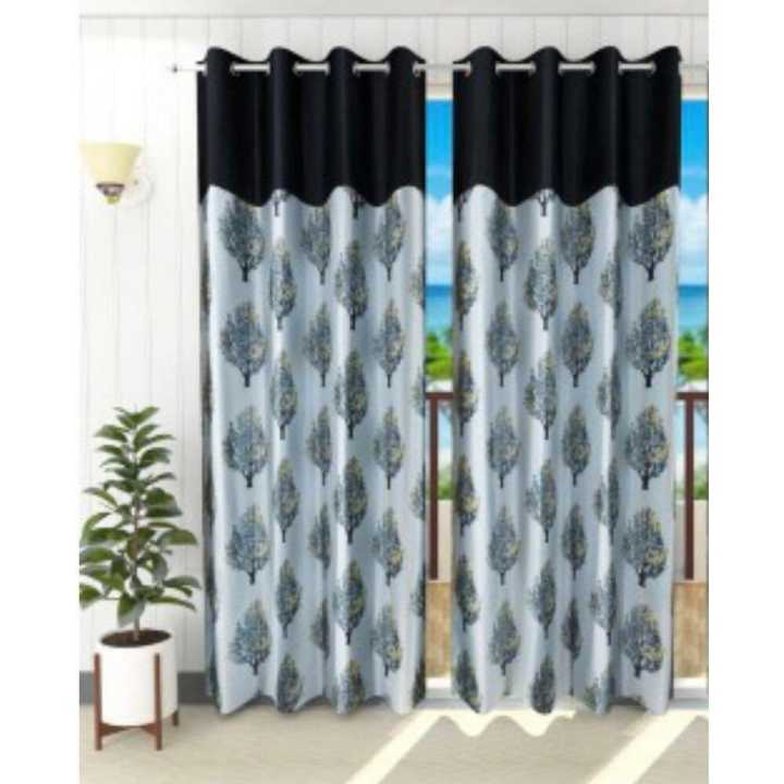 Polyester Curtain/Parda (Pack Of 2) (Floral, Grey)