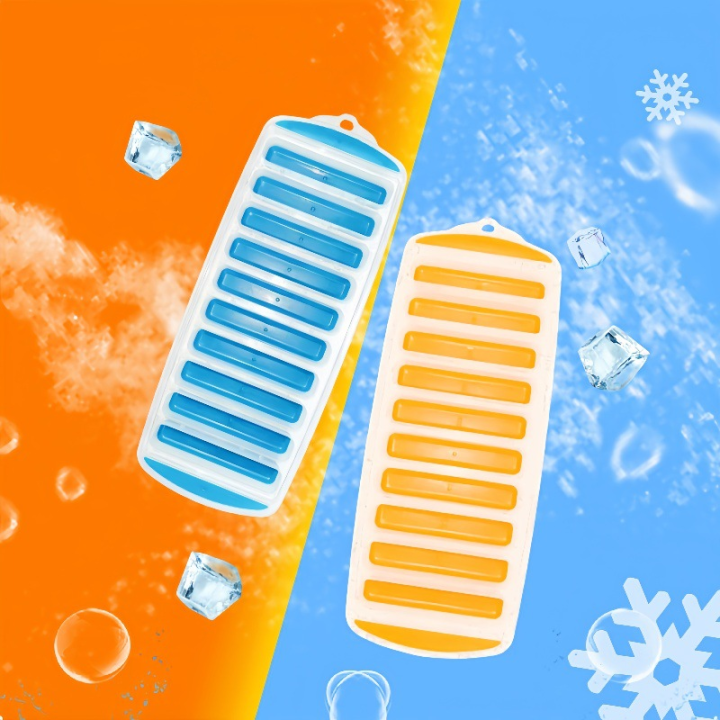 Pop Out Plastic Ice Cube Tray with Lid Reusable Ice Stick Tray Mold for Water and Sport Bottles