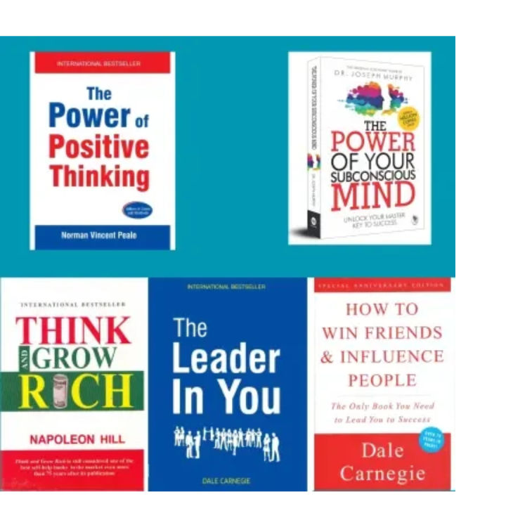 Power Of Positive Thinking + Subconscious Mind + Think And Grow Rich + The Leader In You + How To Win Friends & Influence People (Self Help Combo)