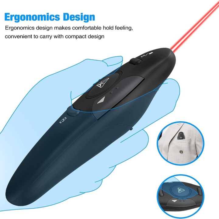 PowerPoint Clicker Black Pointer Pen 2.4GHz Compact USB Red Light Slide Advancer Office