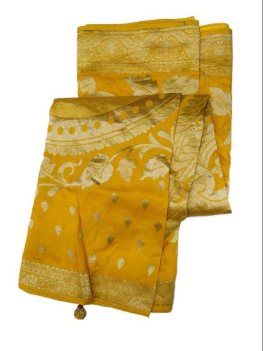 Premium & Elegant Yellow/Golden Border Dola Silk Printed Saree for Women