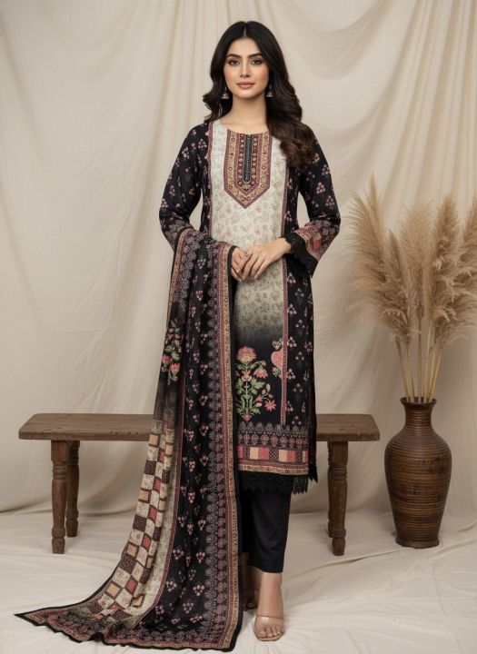 Premium Muslin Digital Print Pakistani Suit – Black (3PC) By Noor Fashion Nepal