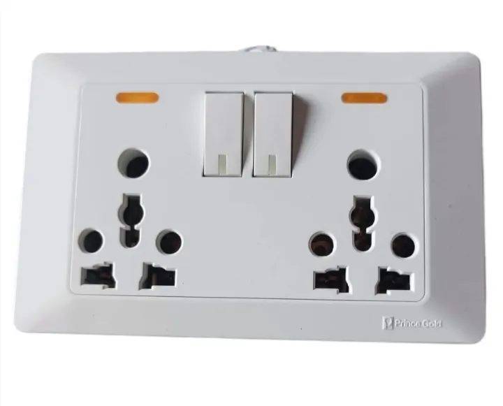 Prince Gold 2 Gang + Double 5/16A Power Socket With Indicator - Switches
