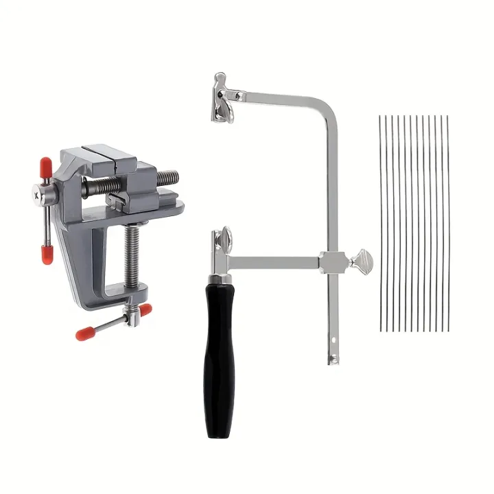 Professional Jewelry Saw Tool Kit with an Adjustable Saw Frame, Includes 12 Saw Blades And a Mini Bench Vise with Clamps for Jew