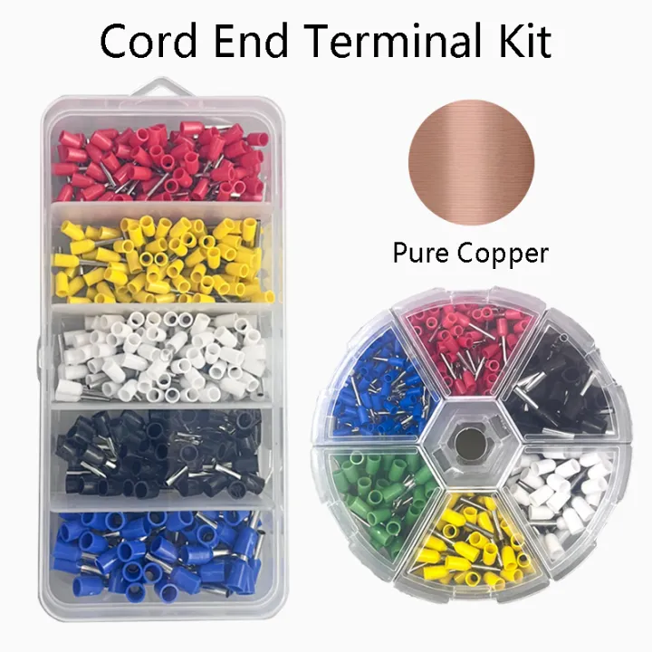 Pure Copper Cord End Terminals Kit Insulated Tubular Crimp Terminal Set E0208 E0308 E0508 E1008 Wire Connector