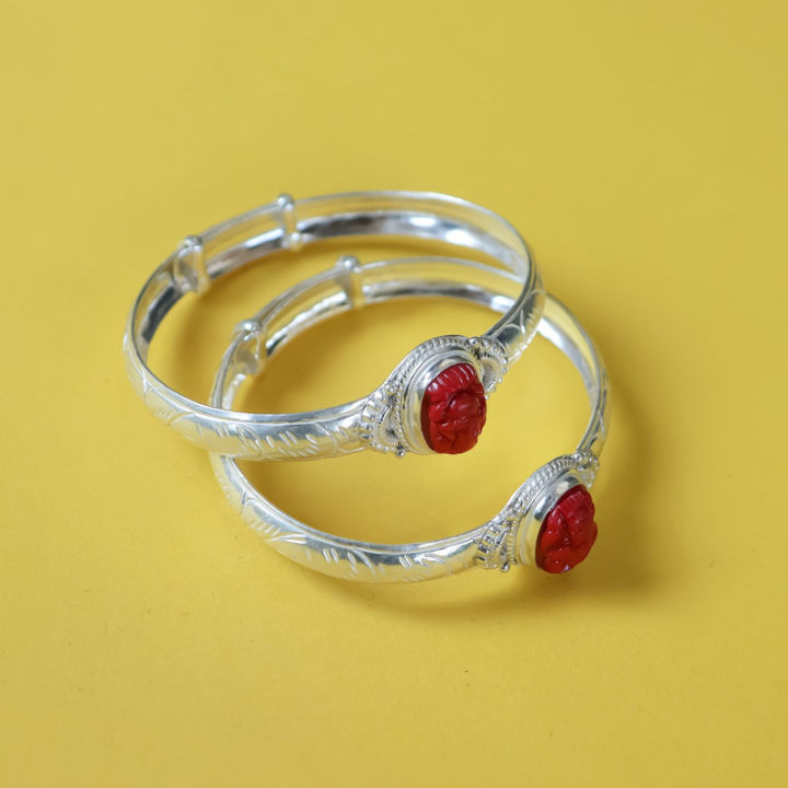 Pure Silver Ganesh Design Muga Carved Bala ForUnisex, 20.99g, Pair