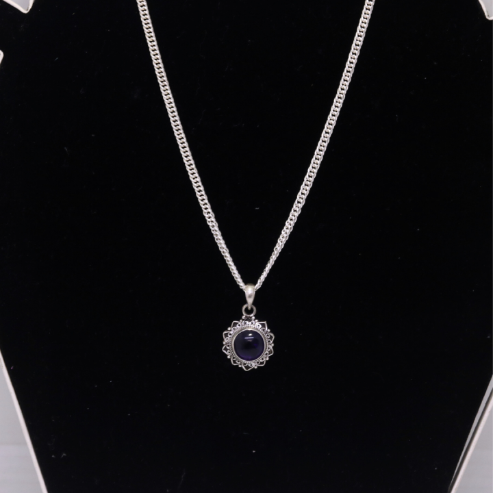 Pure Silver Necklace For Girl / Pure 22k Silver Chain And Locket With Blue Stone For Girl