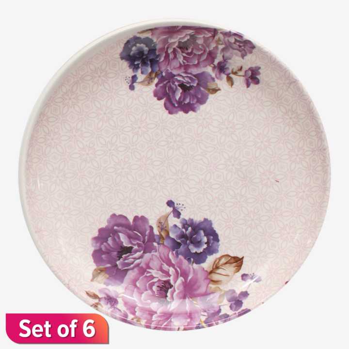 Purple%20Milda%20Plastic%20%20Dining%20Plate%20Flower%20%20Printed%2011Inch%20Set%20of%206%20-%20Image%201