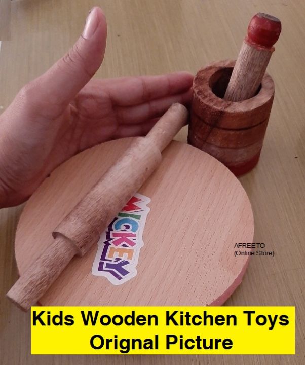 Qubix Kitchen set for kids toys set with Roti maker - Wooden kitchen toys set - Roti maker set Wooden House Hold Kitchen Accessories Set for Kids