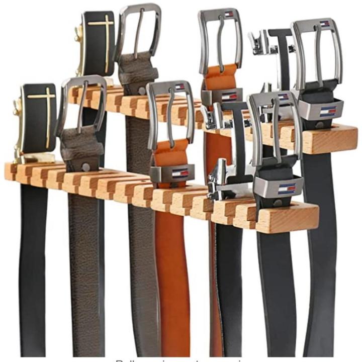 Rack with 360 Rotation Swivel Hook Tie and Belt Organizer Display for Closet Door Wall Belt Hanger for Closet Wooden Belts Organizer Belt