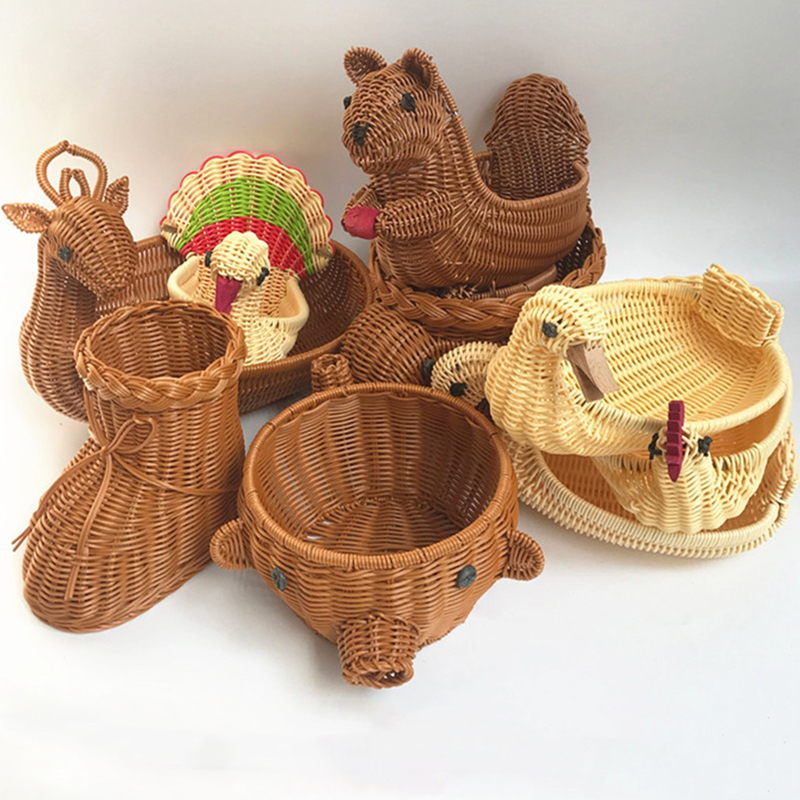 Rattan Woven Fruit Basket Cute Shape Fruit Bowls Tray Vegetable Snack Basket JINBING
