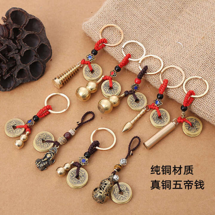 Real Five Emperors Coin Car Key Pendant Copper Gourd Pagoda Wenchang Pen Keychain Ornament