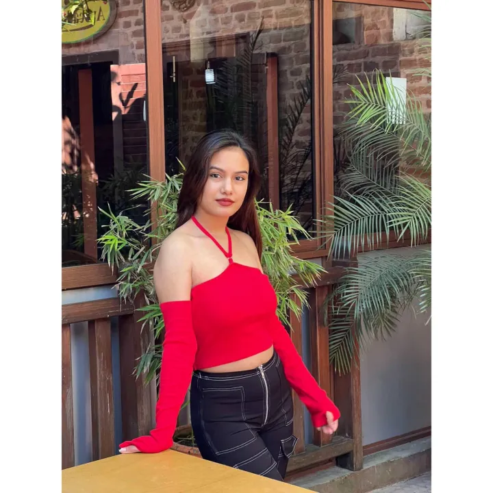 Red Cotton Ribbed Crop Top / Tshirt For Women