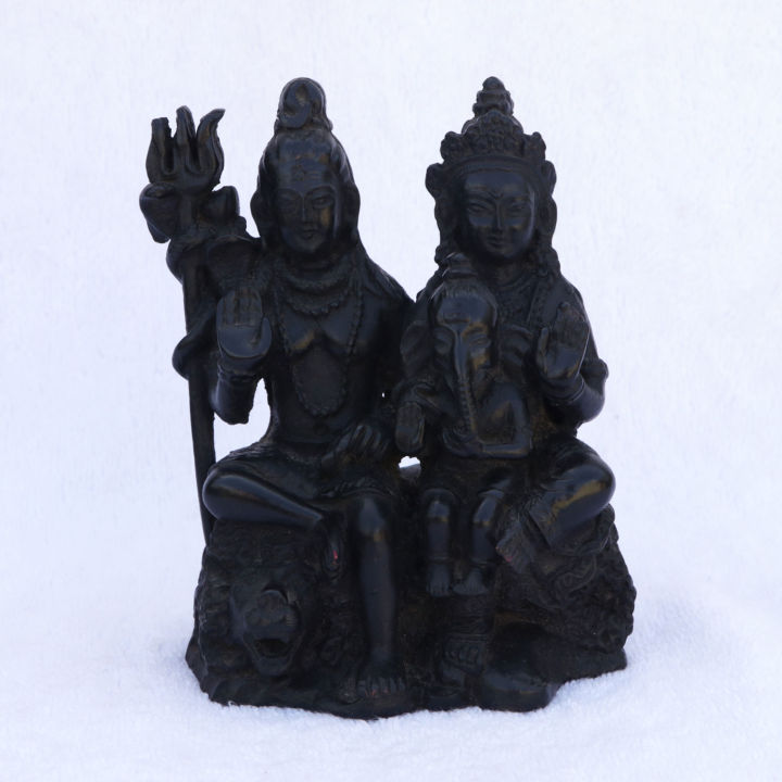 Resin Statue Of Lord Shiva'S Family (Shiva, Ganesh & Parvati)