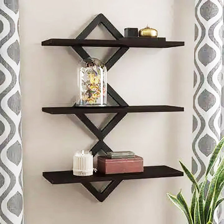 Ressence Enterprises Beautiful Diamond Design Wall Decor Shelf Rack Black Pack Of 3 Pc