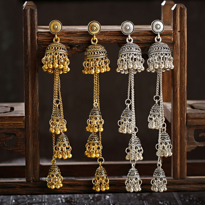 Retro bohemian style elegant port wind chimes long fringe personality versatile temperament show face thin earring girl