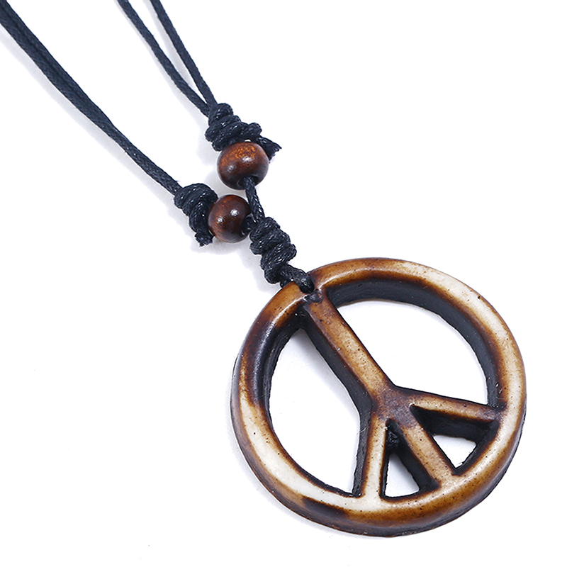 Retro Handmade Peace Symbol Pendant Necklace Long Rope Chain Ethnic Jewelry