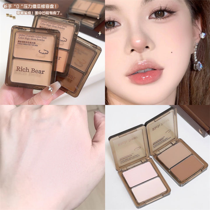 Rich Bear two-color highlighter contour matte water glow powder brightens the face, mid-eyes, nose shadow and silhouette all-in-one palette