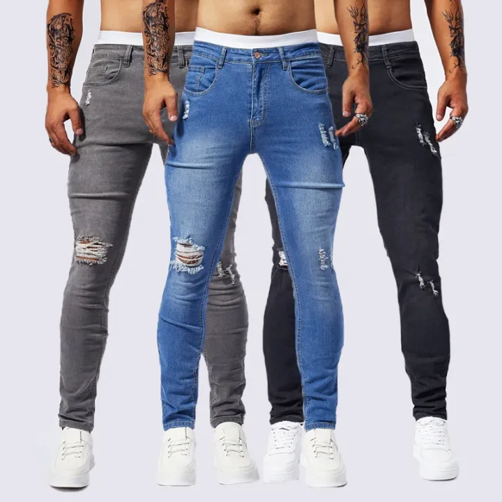 Ripped Men's Jeans Slim Stretch Holes Fashion Biker Denim Pants Skinny Personality Hip Hop Streetwear Male Fashion Trousers