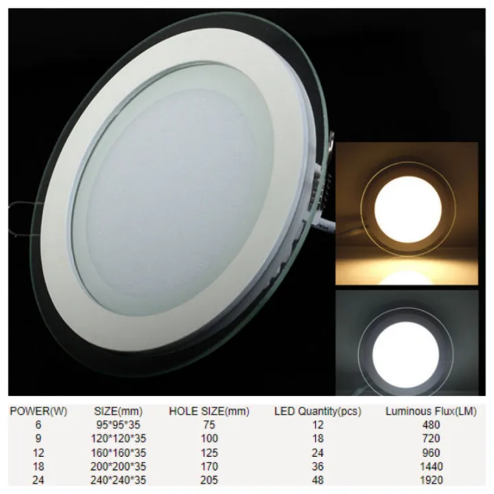 Round LED Downlight 6W 9W 12W 18W 24W Glass LED Panel Recessed Ceiling Spot Down Light Indoor Lighting Lamp AC110V 220V Aluminum