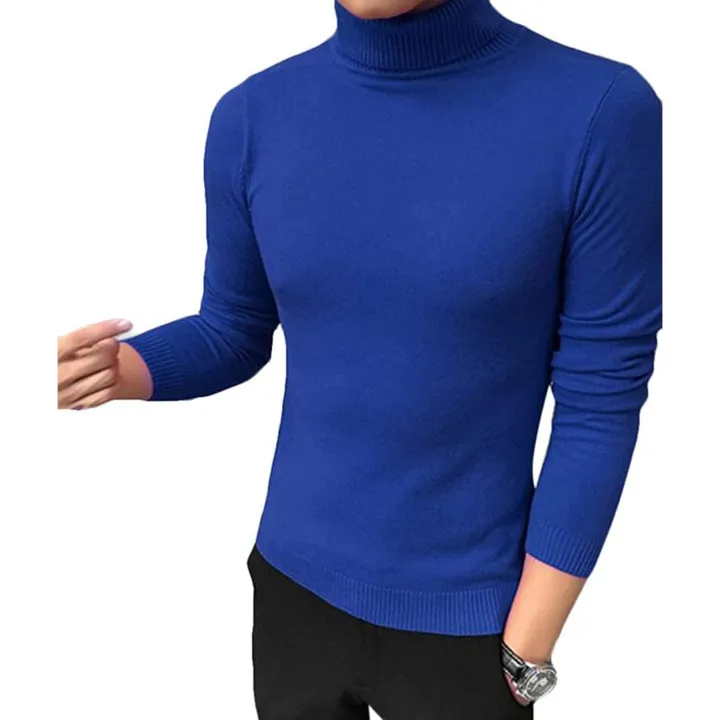 Royal Blue Highneck Turtleneck Sweater Pullover for Men