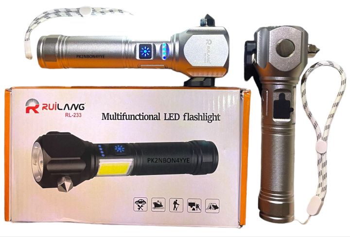 Ruilang%20Rl-233%20Multifunctional%20LED%20Flashlight%20Telescopic%20High%20Range%20Zoom%20Torchlight%20Hammer%20Torch%20Camping%20Light%20With%20Outdoor%20Tools%20Function%20Hammer%20Cutter%20Glass%20Breaker%20Magnet%20Powerbank%20-%20Image%201