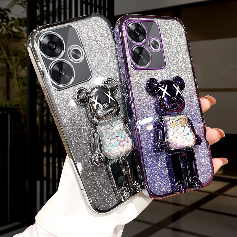 Sales promotion For Infinix Hot 40 40i 40 Pro 30 30i 30 20 12 11 10 9 Play 11s NFC Back Cover Luxury Slim Gradient Glitter Phone Case with 3D Bear Stand Holder for Girls Clear Soft Silicone Protective Pouch Stylish Design