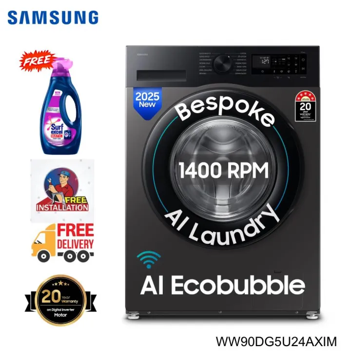 SAMSUNG 9 Kg Washing Machine With AI Eco Bubble WiFi Embedded WW90DG5U24AXIM