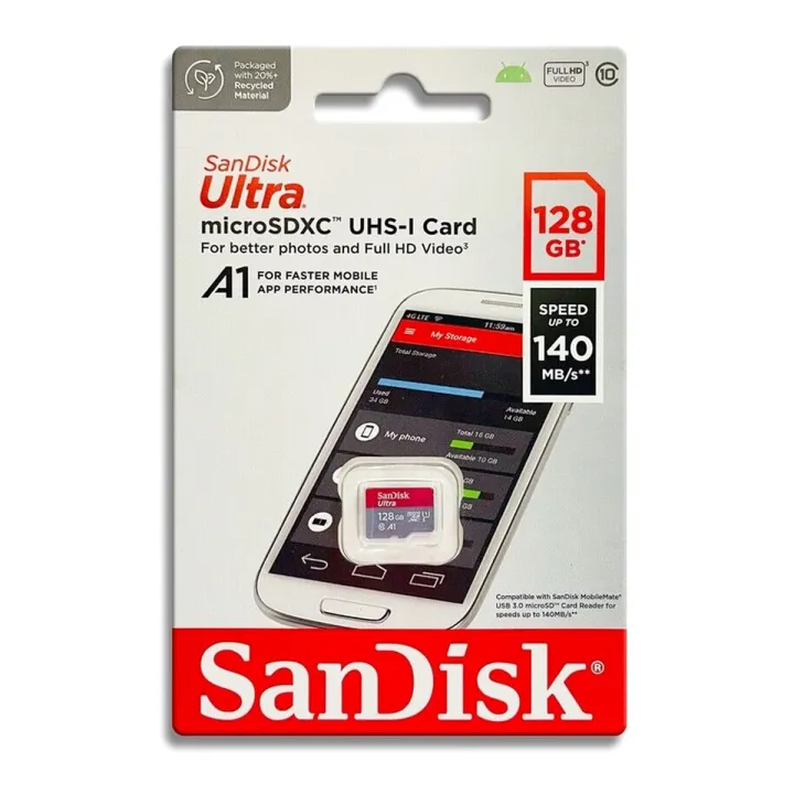 SanDisk Ultra MicroSDXC 128GB UHS-I Speed Up To 140MB/s, A1 Class @10 Memory Card
