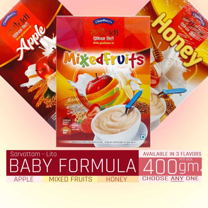 Sarvottam Lito 400g | Sarbottam Pitho Baby Formula Baby Cereal | Assorted Flavors Mixed Fruits Apple Honey