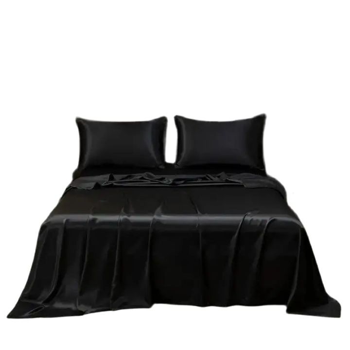Satin%20Bed%20Sheet%20Sets%20for%20Summer%20Silky%20Smoooth%20Top%20Sheet%20with%20Pillowcase%20Single/Queen/King%20Ice%20Cooling%20Flat%20Bed%20Sheet%20Sets%20-%20Image%201