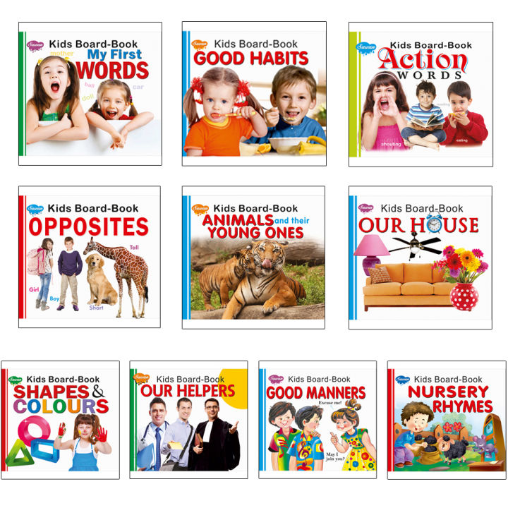 Sawan Kids Board Books (10 Books Set) My Firs Words, Good Habits, Action Words, Opposites, Animals and Their Young Ones, Our House, Shapes & Colors, Our Helpers, Good Manners, Nursery Rhymes
