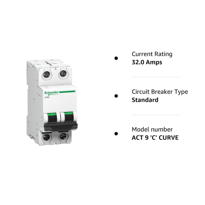 Schneider Electric ACT 9 32A 2 Pole MCB Miniature Circuit Breaker (Multicolour, ACT 9 'C' CURVE)