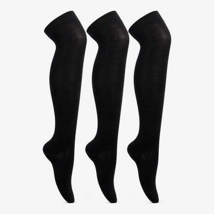 School or Uniform Thigh High Stocking Length Black Socks For Girls (Pack Of 3)