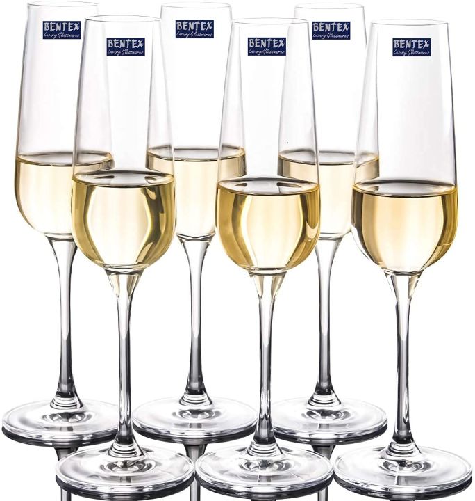 Set of 6 Glass Champagne Flute Wine Glasses 200 ml Long Steam Lead Free Wine Glass