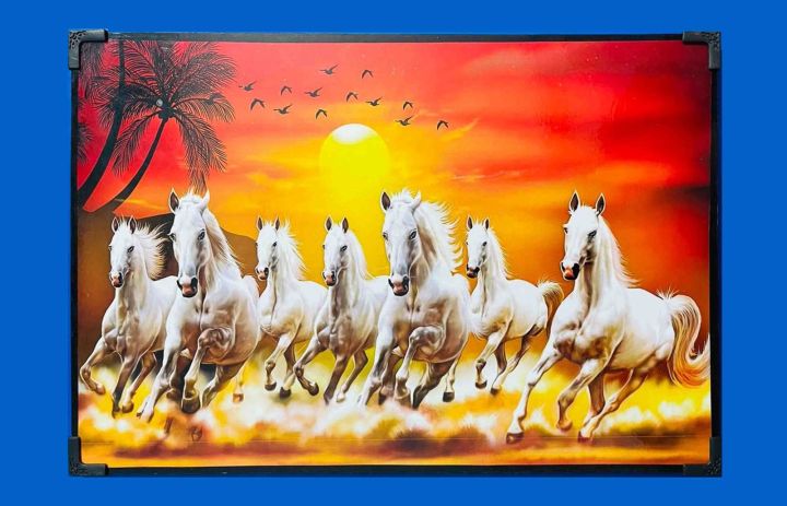 Seven Horse Vastu Hard Wood 12*18 Inch Frame