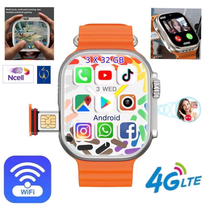Sim Card Smartwatch 4G Ultra S9 Camera Android Wifi Amoiled 2 X 32 GB S12