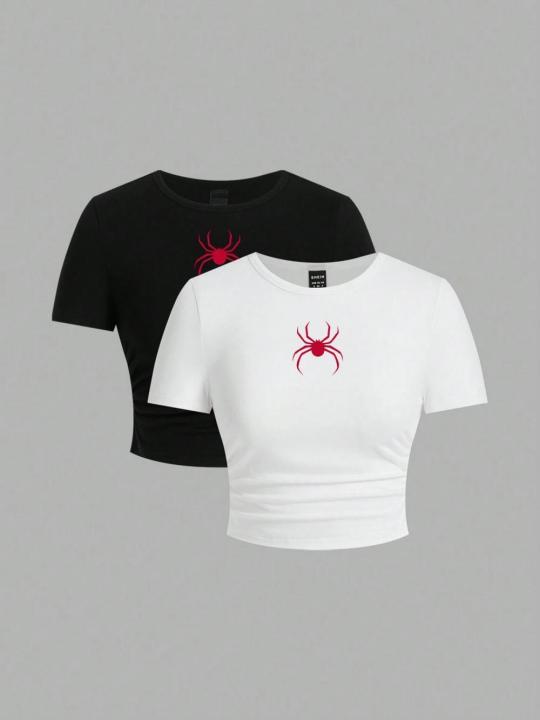 Simple%20Red%20Spider%20Printing%20Crop%20Tops%20Summer%20Street%20Fashion%20Women's%20Slim-fit%20T-Shirt%20Comfortable%20Soft%20High%20Elastic%20Female%20Clothes%20-%20Image%201