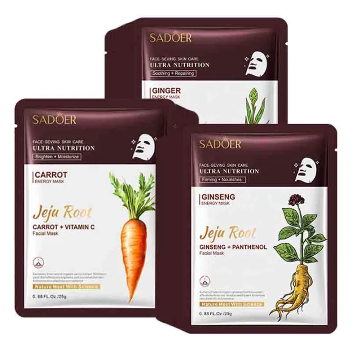 SKIN CARE MASK, GINGER PLANT TABLETS, 5 SADORER ROOT MASK, GINSENG CARROT MASK, MOISTURIZING, FIRMING AND MOISTURIZING