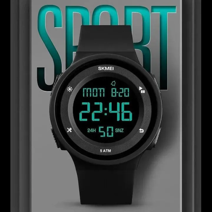SKMEI 1445 Countdown Electronic Silicone LED Digital Sport Unisex Watch - Black