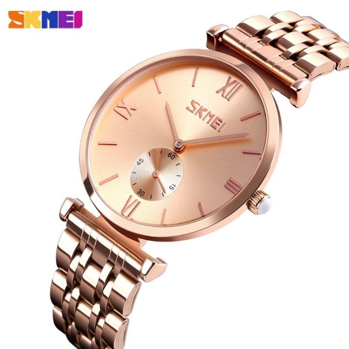 SKMEI 9198 Women Watch Simple Numeric Index Design Stainless Steel Chronograph Quartz - RoseGold