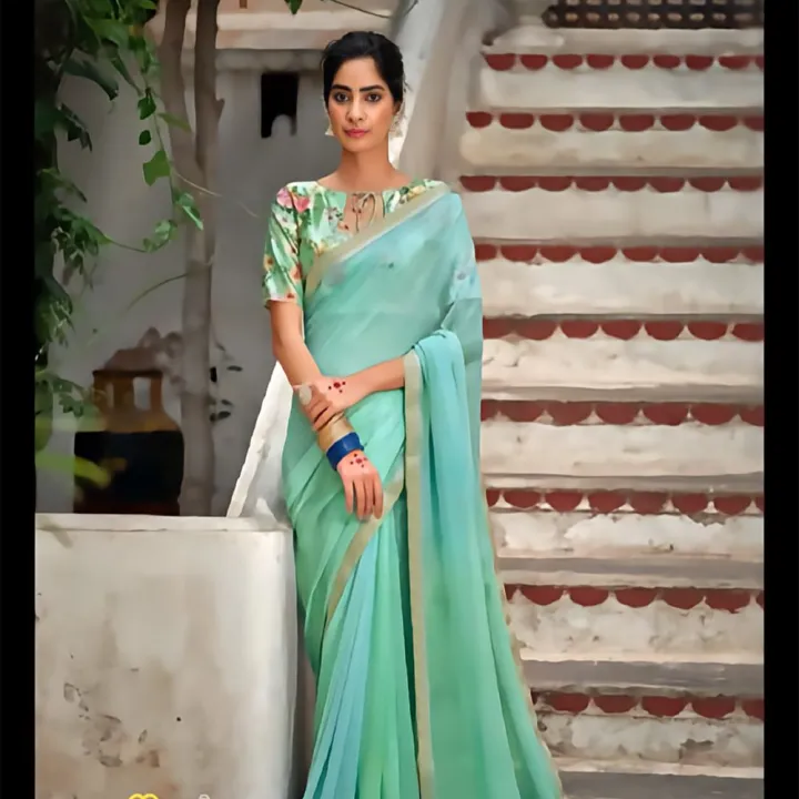Sky%20Blue%20Sirosky%20Pure%20Chiffon%20Saree%20With%20Blouse%20For%20Women%20-%20Image%201