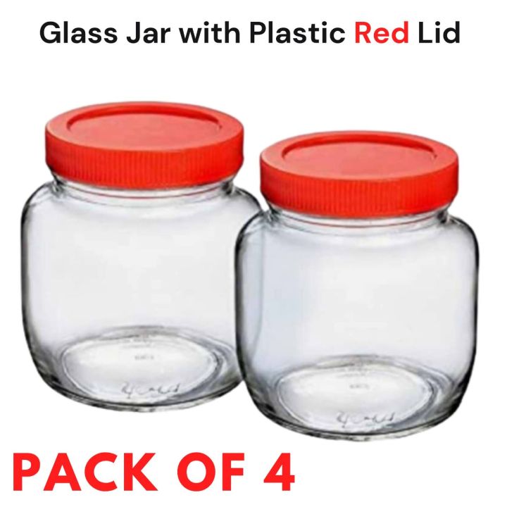 Small%20Glass%20Jar%20with%20Plastic%20red%20Lid%20for%20Kitchen%20Storage%20250ML-(Set%20Of%204)%20-%20Image%201