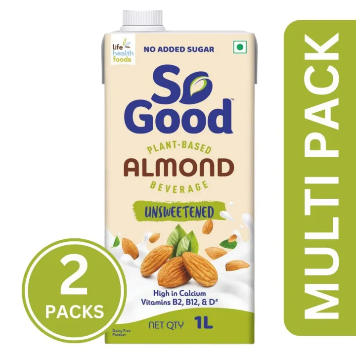 So Good Almond Milk (100% Vegan Milk, Plant Based Milk)- 1Ltr Pack Of 2