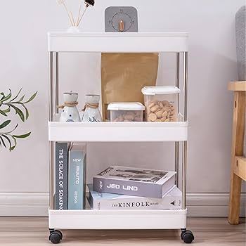 Spacekeeper 3 Tier Slim Storage Organizer Rolling Utility Cart Tower Rack for Kitchen Bathroom Laundry Plastic & Stainless Steel