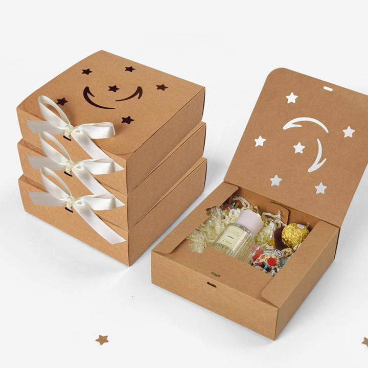 Square Packaging Boxes Bow Candy Box Solid Color Flip Cover Gift Box for Festival Celebration Mubarak