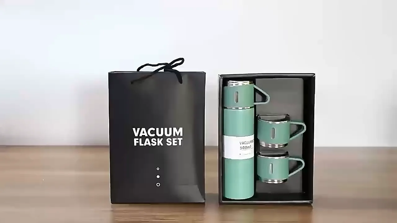 Stainless Steel Vacuum Flask With 3 Cup | Modern Water Bottle Thermos With Extra 2 Lids l