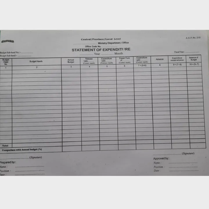 Statement Of Expenditure (AGF No. 210) - New Form For Commerce Students- Accounting SOE Format Sheets |